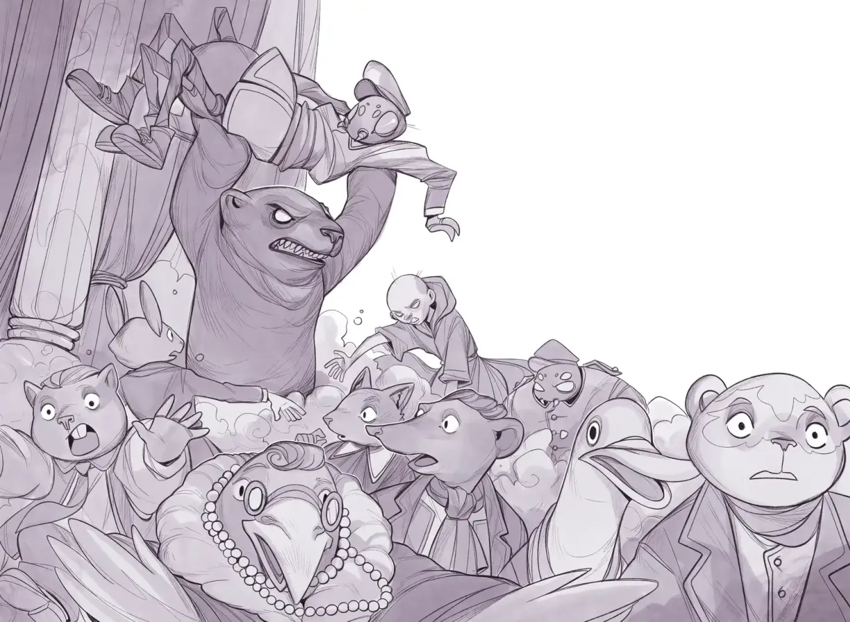 This scene marks the turning point of Book II. Until now, Anne has been reacting to others’ moves. But here, for the first time, the initiative belongs to her side — thanks to The Hinge, the old bandit gull, once Heino’s accomplice, now his bitterest enemy. With his raspy voice and smoky theatrics, The Hinge becomes the unlikely conductor of an uprising decades in the making.