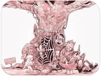 The Spider is a relatively minor figure in the story – and yet a terrifying one. He guards a mechanical gate deep in the Forest, lounging beside his trap with that smug confidence typical of a creature that knows no one can challenge him. Huge, intelligent, and armed with a knife, he speaks with fake politeness – violence disguised as service.
