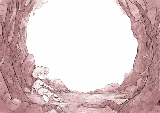 The path led to a second, smaller meadow, blocked by the massive trunk of an ancient tree. The tree was so thick that it completely blocked the way. However, someone had hollowed out a large tunnel through its center — wide enough for a person to walk through upright without any trouble.