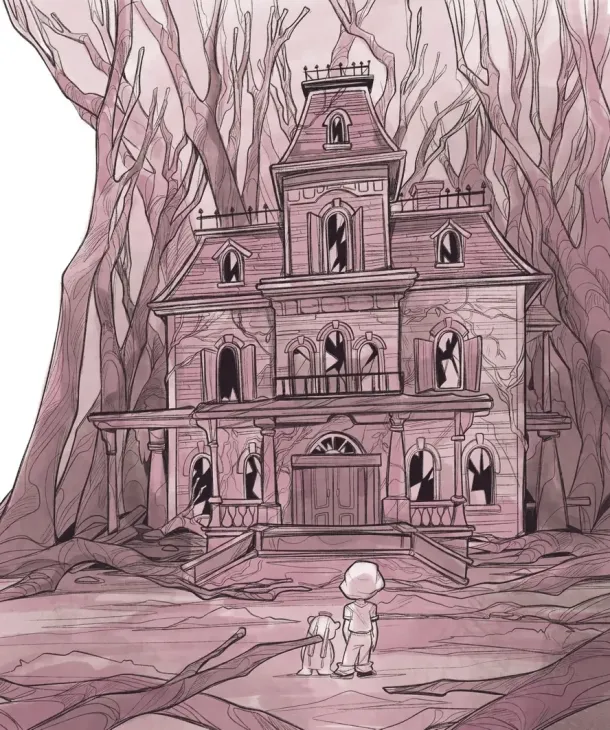 There was no doubt — they were standing in front of the Ghost Mansion! Everything around them spoke of ruin and desolation, just as one would expect from a house full of ghosts.