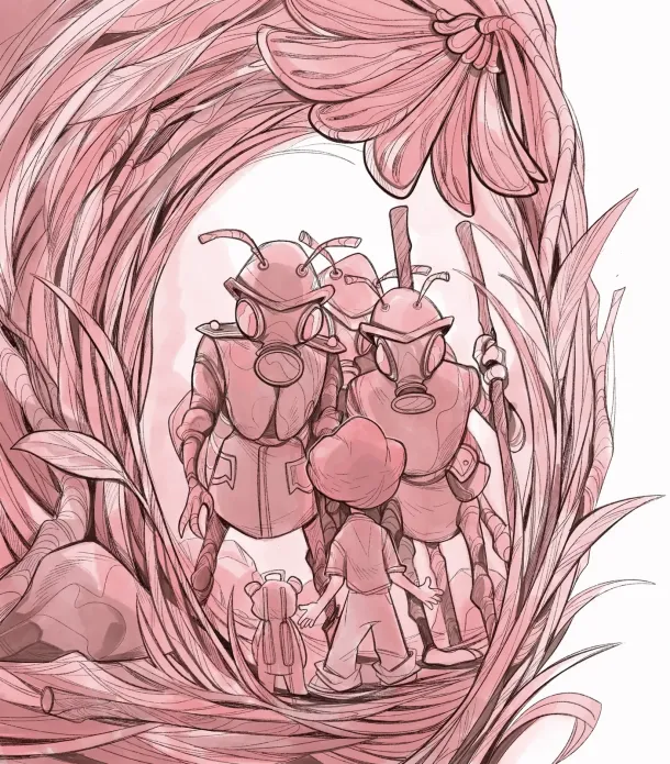 Suddenly, the stalks in front of them parted, and through the opening, three strange figures literally tumbled out. Their armored bodies looked heavy and menacing, and the large curved cudgels they carried didn’t exactly inspire confidence.