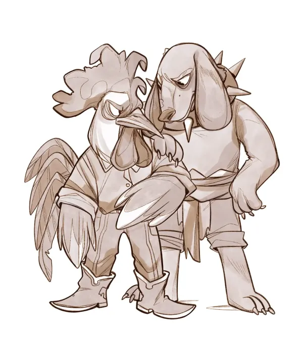 “Hey, you there!” shouted one of the guards — a small, terribly scruffy rooster dressed in torn jeans, a colorful shirt missing half its buttons, and boots with enormous, jangling spurs.
