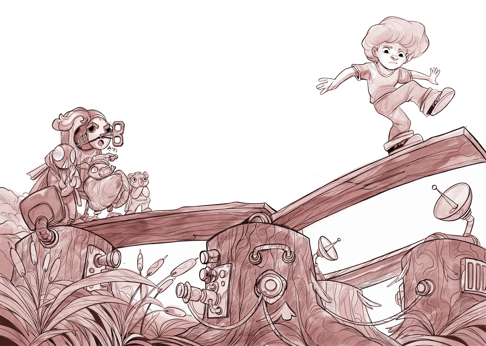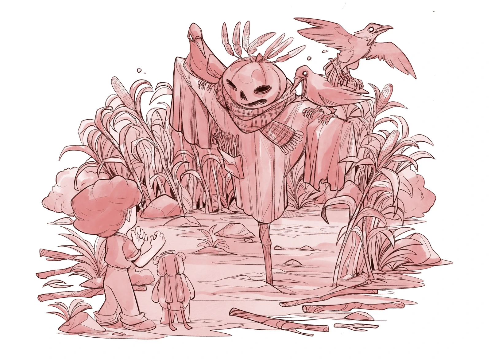 In the middle of the meadow, leaning to one side like the Tower of Pisa, stood a lonely scarecrow.