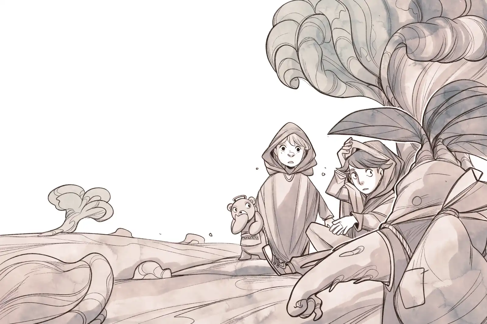 “Right. Now listen carefully,” said Fido, while intently surveying the vast plain that stretched out before them. As far as the eye could see lay a barren field, dotted here and there with small clusters of trees. -