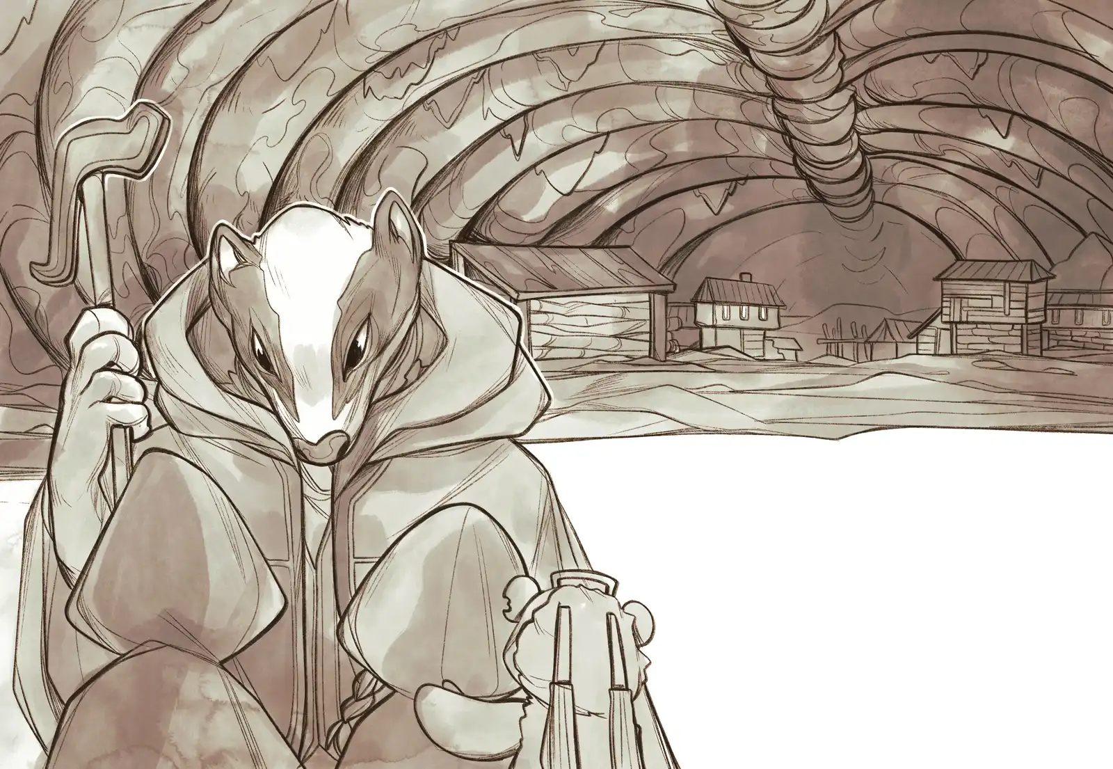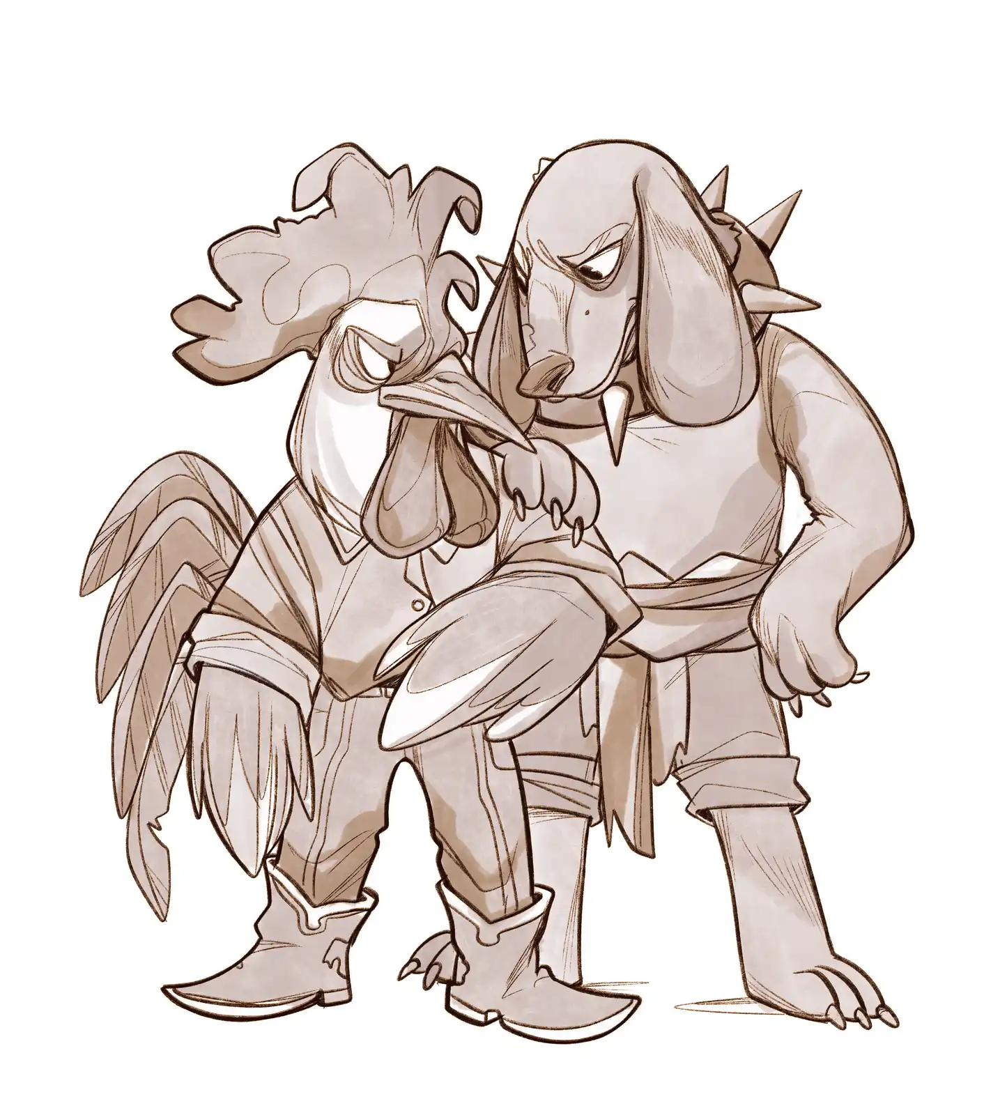 “Hey, you there!” shouted one of the guards — a small, terribly scruffy rooster dressed in torn jeans, a colorful shirt missing half its buttons, and boots with enormous, jangling spurs. -