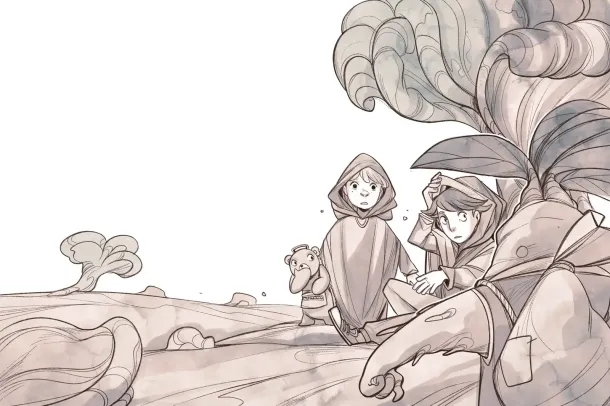 “Right. Now listen carefully,” said Fido, while intently surveying the vast plain that stretched out before them. As far as the eye could see lay a barren field, dotted here and there with small clusters of trees.